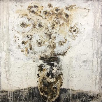 Tom is known for his rich textures and organic forms. A tactile look is achieved, delighting the sense of touch as well as sight. The viewer is seduced by the complexity of color and textures, thick and thin paint. His work has a captivating earthy quality that strikes a primordial chord with the viewer.